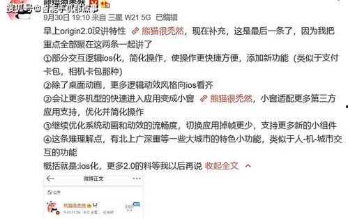 你知道吗?最近手机圈子里可是炸开了锅,因为有一个大消息传得沸沸扬扬——OriginOS 2.0的最新爆料!这款操作系统可是华为的看家本领,每次更新都让人翘首以盼。今天,就让我带你一起揭开OriginOS 2.0的神秘面纱,看看它有哪些让人眼前一亮的新功能吧!